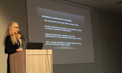 Etkinlikte Doç. Dr. Canan Akman “Depremde Acil Sağlık Hizmetleri” başlıklı sunumunda, afet anlarında sağlık sisteminin hızlı ve etkin şekilde devreye girmesinin hayati önem taşıdığını vurguladı.