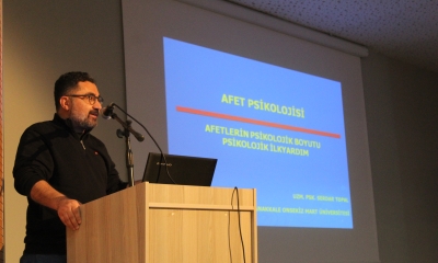 Psikolog Serdar Topal ise “Afetlerde Psikososyal Destek” başlıklı sunumunda afetlerin bireyler üzerindeki psikolojik etkilerine değinerek, afet sonrası süreçte psikososyal destek mekanizmalarının önemini anlattı. Topal, afetlerden etkilenen bireylerin yaşadığı travma, kaygı ve stres gibi durumlarla başa çıkabilmeleri için sunulan psikolojik destek hizmetlerinin hem bireyler hem de toplum açısından kritik bir rol üstlendiğini ifade etti.