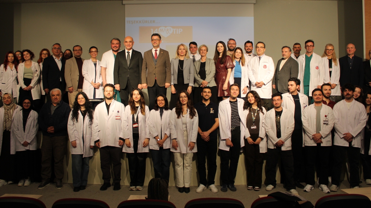 Tıp Fakültesi ve Hastanemiz iş birliğiyle 14 Mart Tıp Bayramı programı düzenlendi. Programa; Rektör Prof. Dr. R. Cüneyt Erenoğlu, Tıp Fakültesi Dekanı Prof. Dr. Semra Usta, İl Sağlık Müdürü Hakan Görgülü, Tıp Fakültesi Dekan Yardımcıları Prof. Dr. Gamze Çan ve Prof. Dr. Eyüp Burak Sancak, Genel Sekreter Yardımcıları Dr. Öğr. Üyesi Tanju Güdük ve Sinan Karabulgu, Hastane Yönetimi, öğretim üyeleri, idari personel ve öğrenciler katıldı.